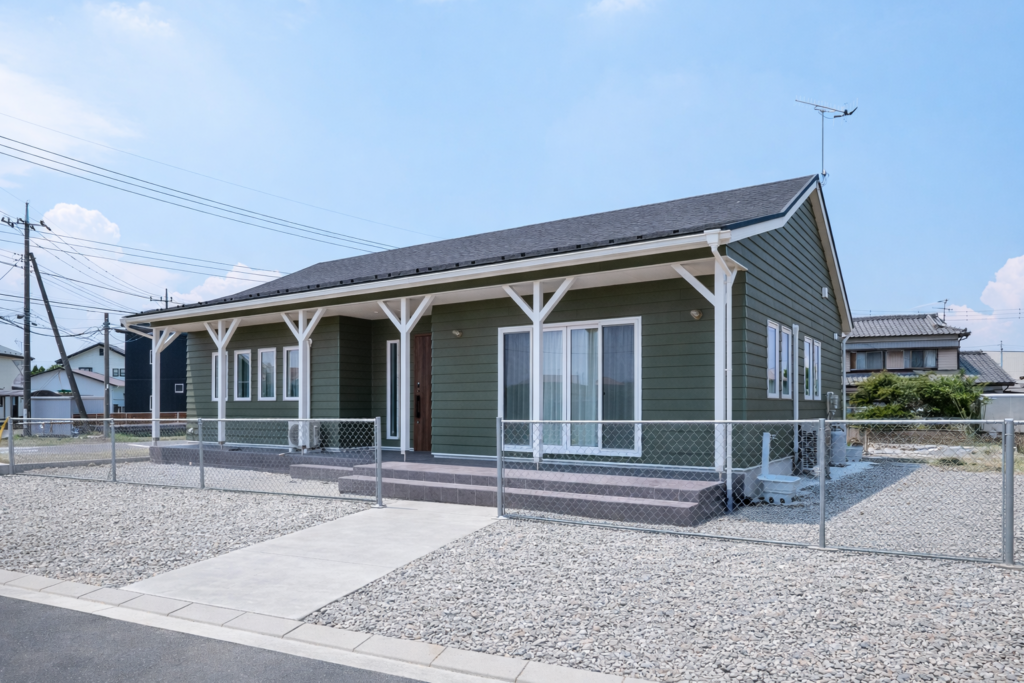 腰折屋根が印象的な平屋のアメリカンハウス